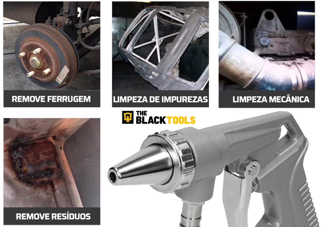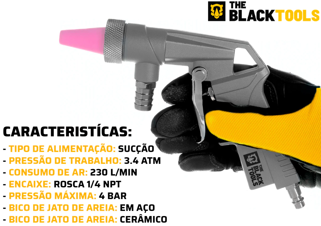 Pistola Jateamento Jato De Areia Rosca 1/4 Npt Sucção Com Mangueira Btjt1000 The Black Tools