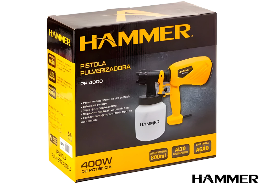 Apresentação: A Pistola Pulverizadora Elétrica PP4000 é a escolha ideal para quem deseja realizar pinturas rápidas e sem complicações. Com um design leve e portátil, ela proporciona uma aplicação de tinta uniforme, sem manchas, respingos ou sujeira, facilitando o acabamento perfeito em qualquer superfície. Seu bico de tripla ação permite a aplicação em direções verticais, horizontais e circulares, oferecendo versatilidade e precisão em cada projeto.