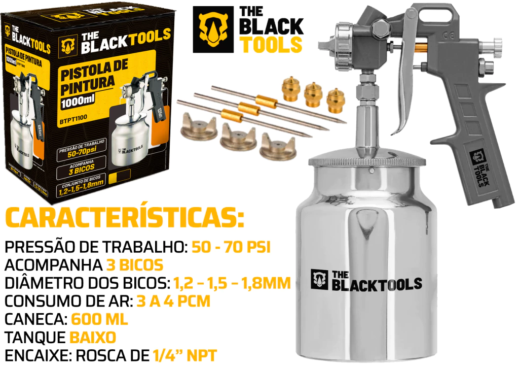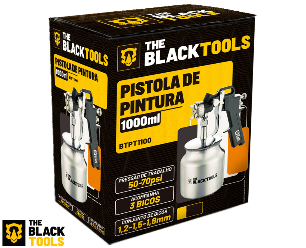 PISTOLA PINTURA SUCÇÃO 1000ML 3 BICOS 1.2 1.5 1.8MM - BTPT1100 The Black Tools