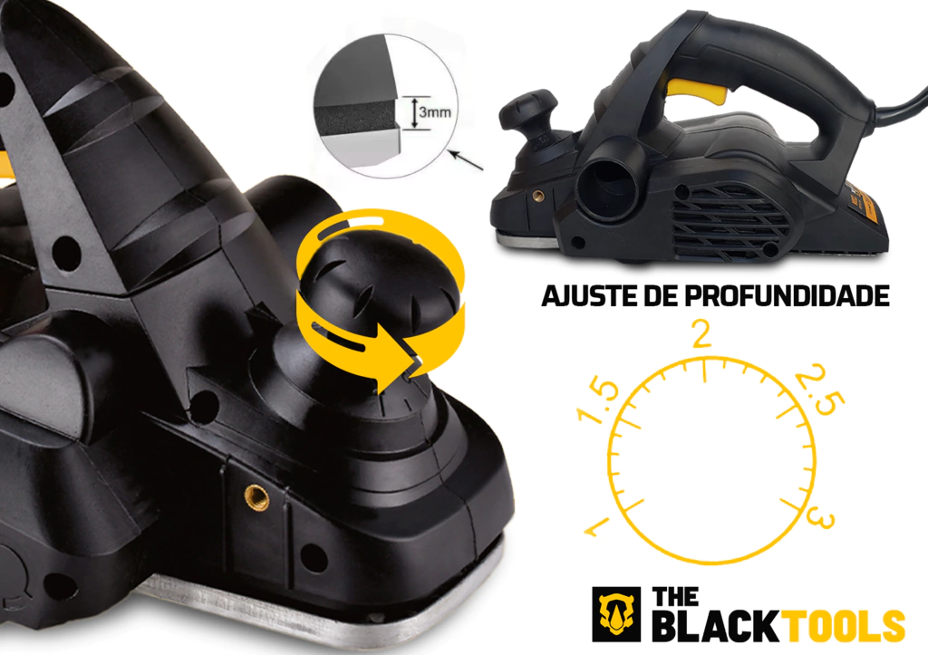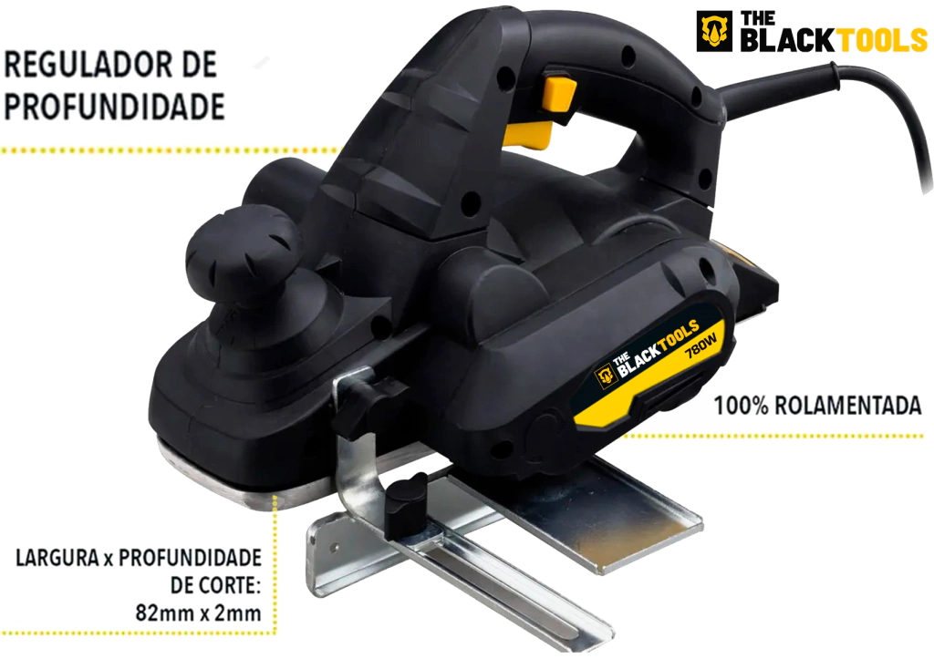 PLAINA ELETRICA 780W BFP780 da The Black Tools, é indicada para desbastar e aplainar madeiras na forma de caibros, placas ou materiais semelhantes. Ela também é adequada para quebrar bordas e rebaixar.