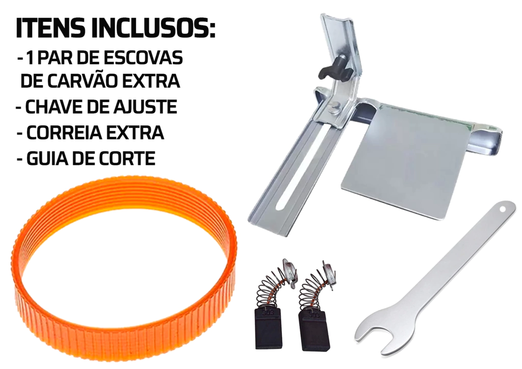 ITENS INCLUSOS - 01 Guia Lateral - 01 Par de carvão - 01 Chave Fixa - Manual de uso - 01 Plaina