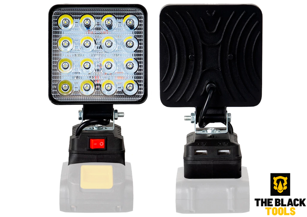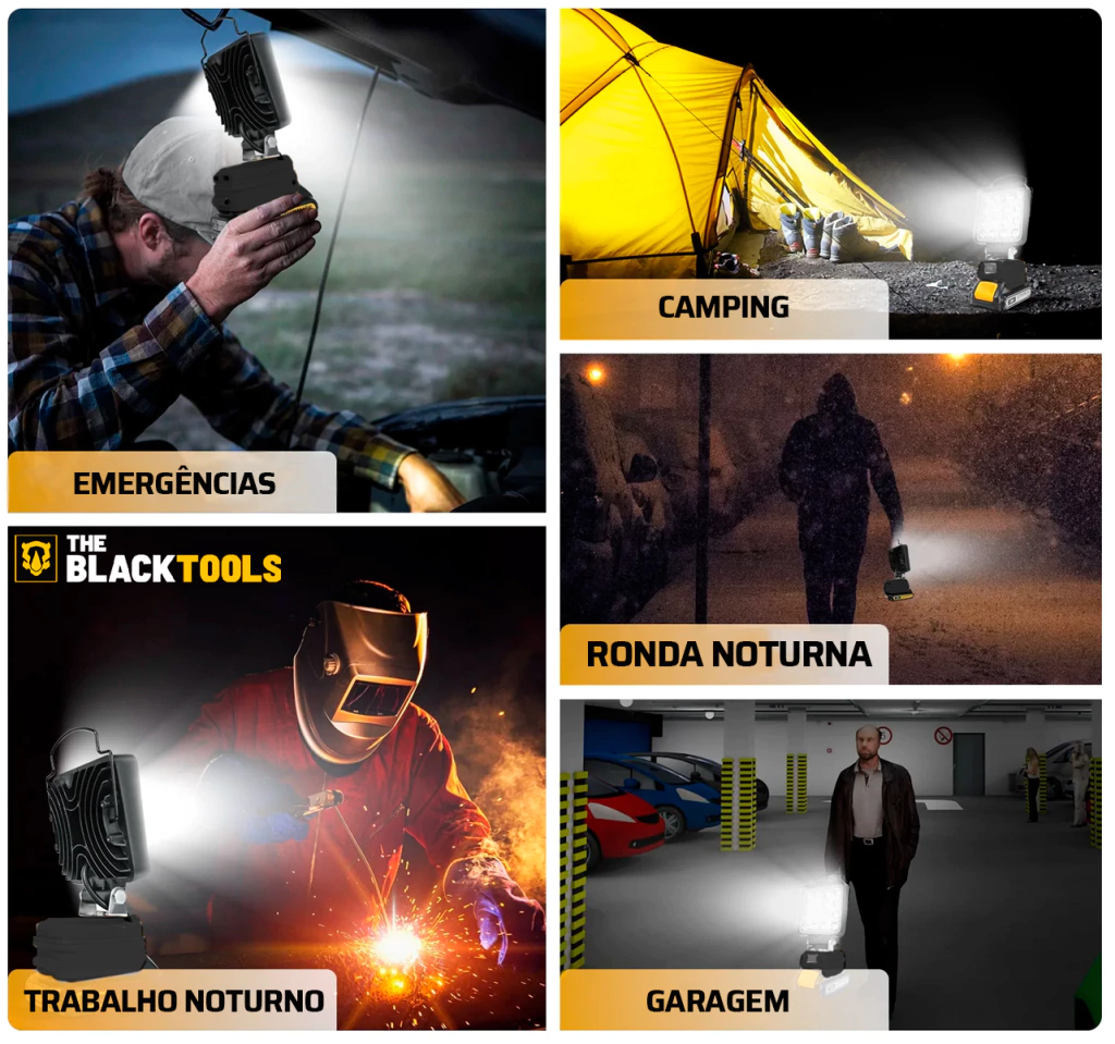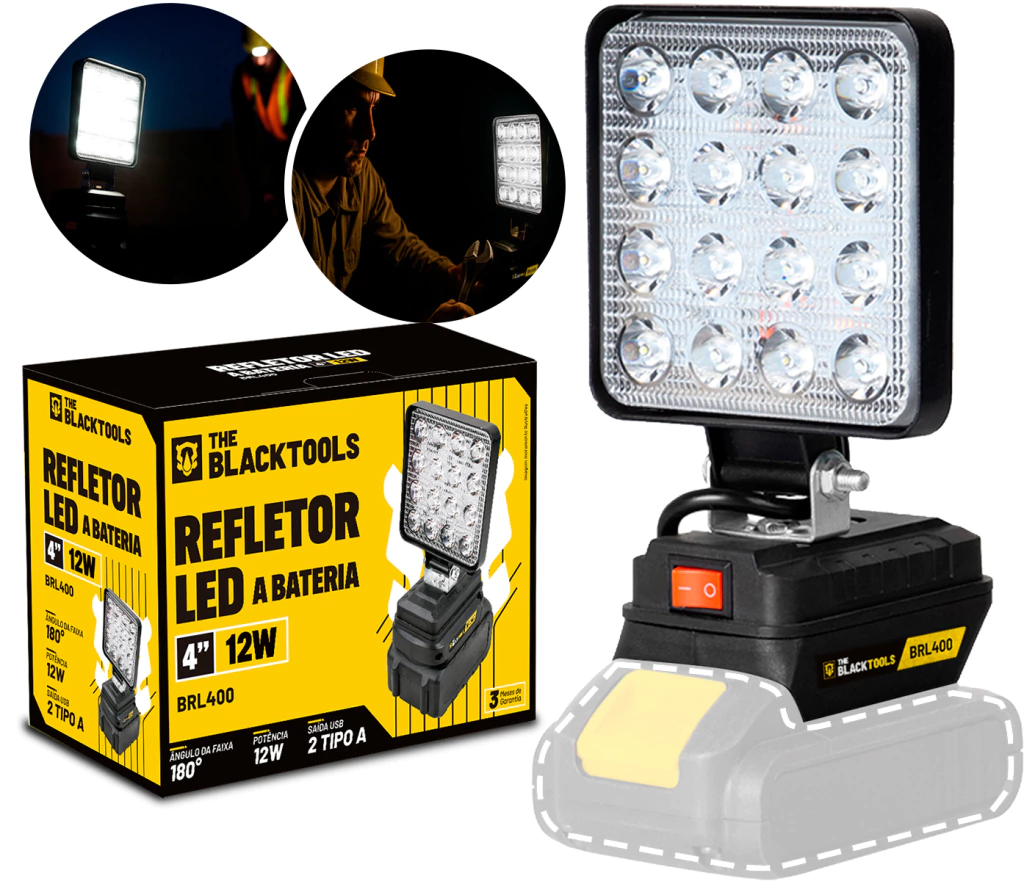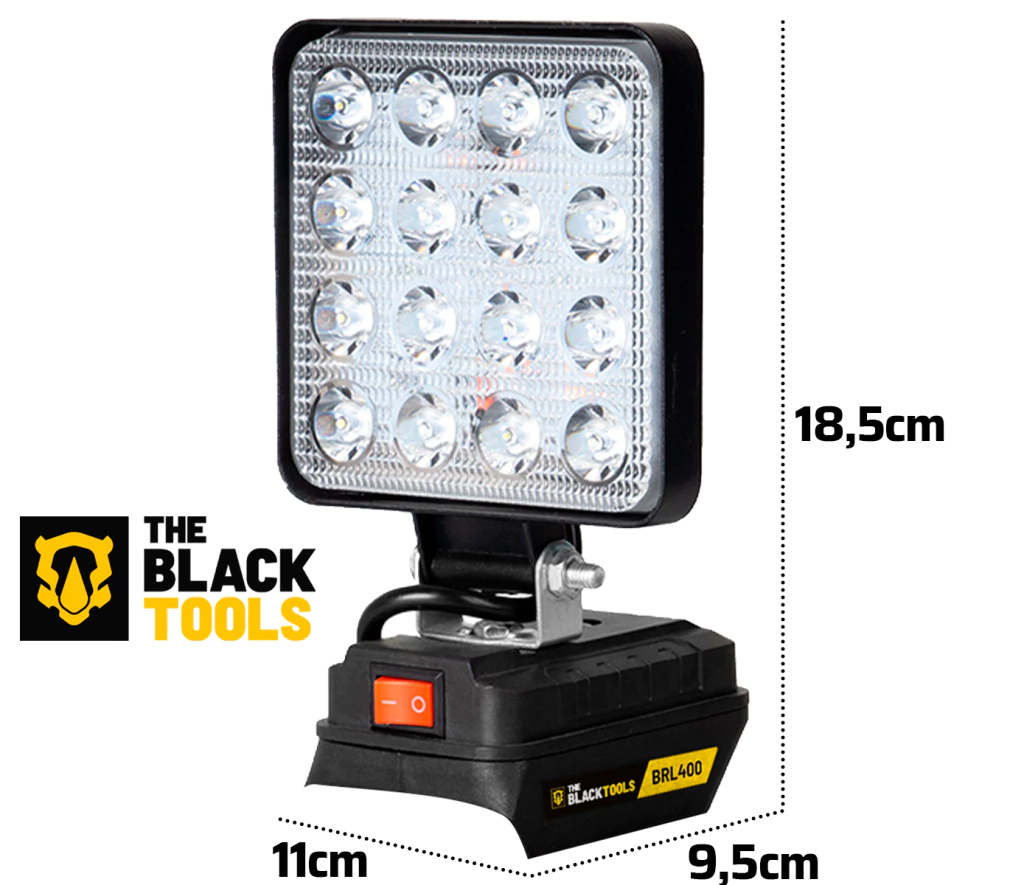 LANTERNA REFLETOR HOLOFOTE PORTÁTIL RECARREGÁVEL 12W A BATERIA 21V 127/220V BIVOLT BRL400 The Black Tools