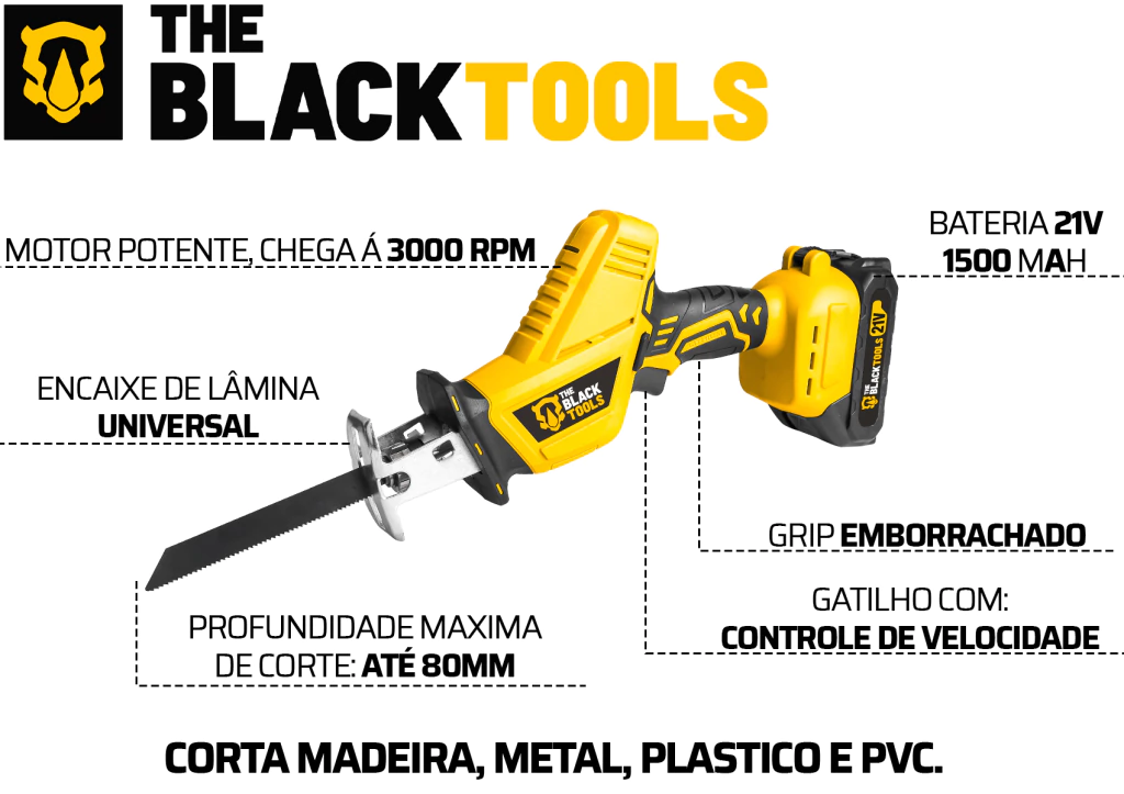 SERRA SABRE A BATERIA PORTÁTIL 21V BIVOLT TCR21B - The Black Tools