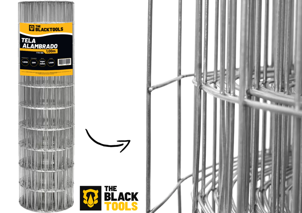 A tela soldada TTR100 da The Black Tools fio 1,60mm possui galvanização a fogo, oferecendo uma maior durabilidade ao tempo; O arame galvanizado é revestido com uma camada de zinco que ajuda a proteger a tela contra a corrosão e a oxidação.