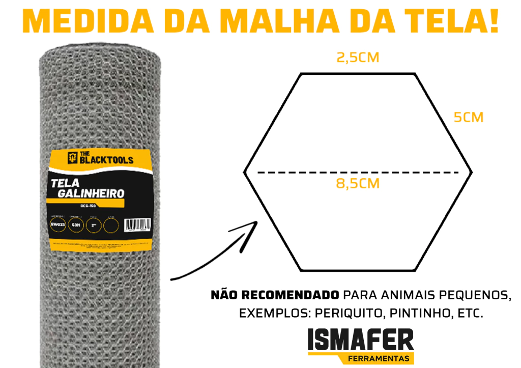 VANTAGENS: - A Tela Galinheiro é ideal para proteção contra invasores, cercamento de granjas, hortas, quintais, terrenos, aves médias e grandes; - São telas muito simples de se instalar.