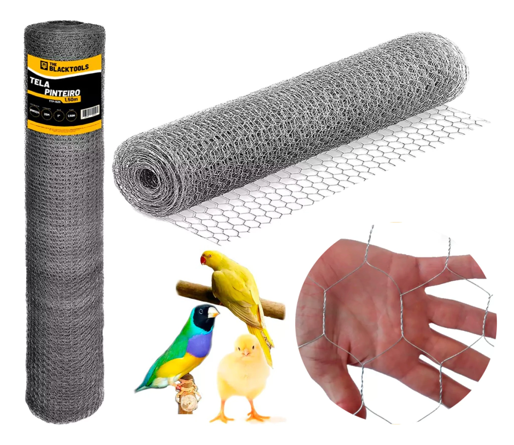 VANTAGENS: - A Tela pinteiro é ideal para proteção contra invasores, cercamento de granjas, hortas, quintais, terrenos, aves pequenas e etc; - São telas muito simples de se instalar e utilizar.
