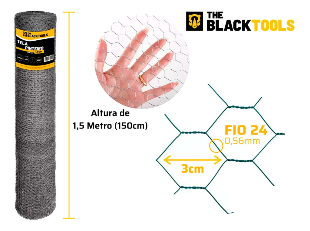 TELA PINTEIRO GALVANIZADA 1,50M X 25 METROS TTP1525 - The Black Tools