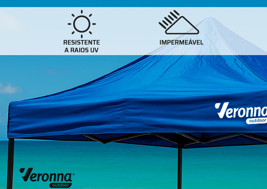 DESCRIÇÃO: O Gazebo VTG200 da Veronna é a solução ideal para quem busca sombra e proteção UV em ambientes externos. Com estrutura resistente e design funcional, ele oferece praticidade para momentos ao ar livre. Com fácil montagem e transporte, é a escolha perfeita para atividades ao ar livre, como camping, praias e eventos.