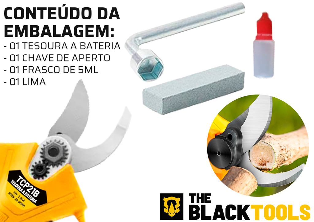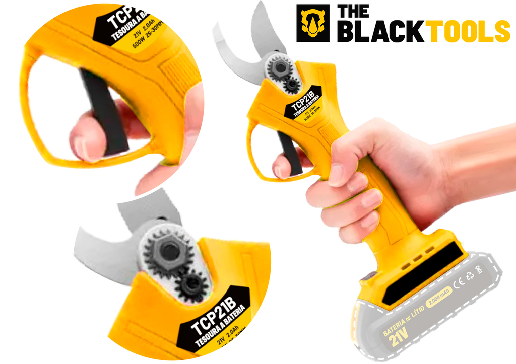 TESOURA ELÉTRICA A BATERIA PARA PODA TCP21BSB - The Black Tools